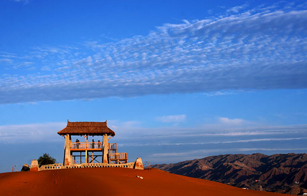 特殊的地理環境孕育了豐富的旅游資源,在這里,可以看到極具歷史積淀意義的4公里長的明代古長城遺址的宏偉景觀;可以站在湖畔觀賞著多達15種的沙漠生態魚和136種鳥類,其中黑鸛、大天鵝、金雕分別屬于國家一、二級保護動物;可以在水上樂園與湖水親近;可以在遼闊的沙漠草原中縱情馳騁、在金沙島紫色的花海中徜徉;可以在永安寺里尋找片刻的寧靜,在五彩池畔與荷花仙子心靈神匯。騰格里湖沙漠濕地旅游區溫泉猶如沙漠里的藍色水晶,如詩如畫的旖旎風光,看著格外悅目。